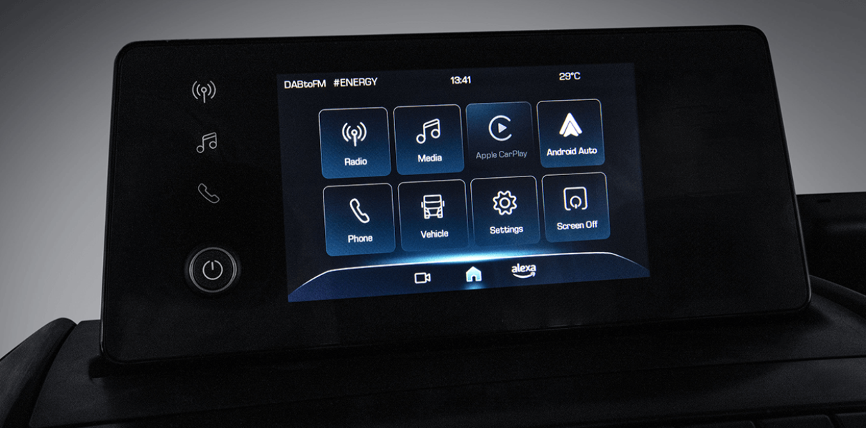 Kolejną technologiczną innowacją w kabinie jest nowy 7-calowy ekran dotykowy systemu Infortainment, który umożliwia kierowcy korzystanie z cyfrowego świata na pokładzie, a także dostęp do nawigacji. Dostępne są również: radio DAB i kamera cofania. Osoby w kabinie mogą w pełni korzystać z dwóch portów USB do ładowania inteligentnych urządzeń, zaś Apple CarPlay i Android Auto umożliwiają podłączenie smartfona z systemem iOS lub Android, zapewniając dostęp do znanych aplikacji używanych na co dzień przez kierowcę. Każde zadanie transportowe zaczyna się od kluczyka – nowy model wyposażono w nowy elektroniczny kluczyk o nowoczesnej i wytrzymałej konstrukcji, dostosowanej do trudów zadań transportowych.